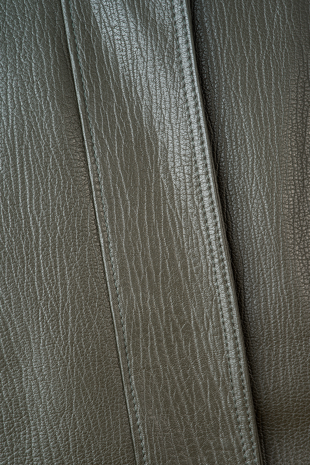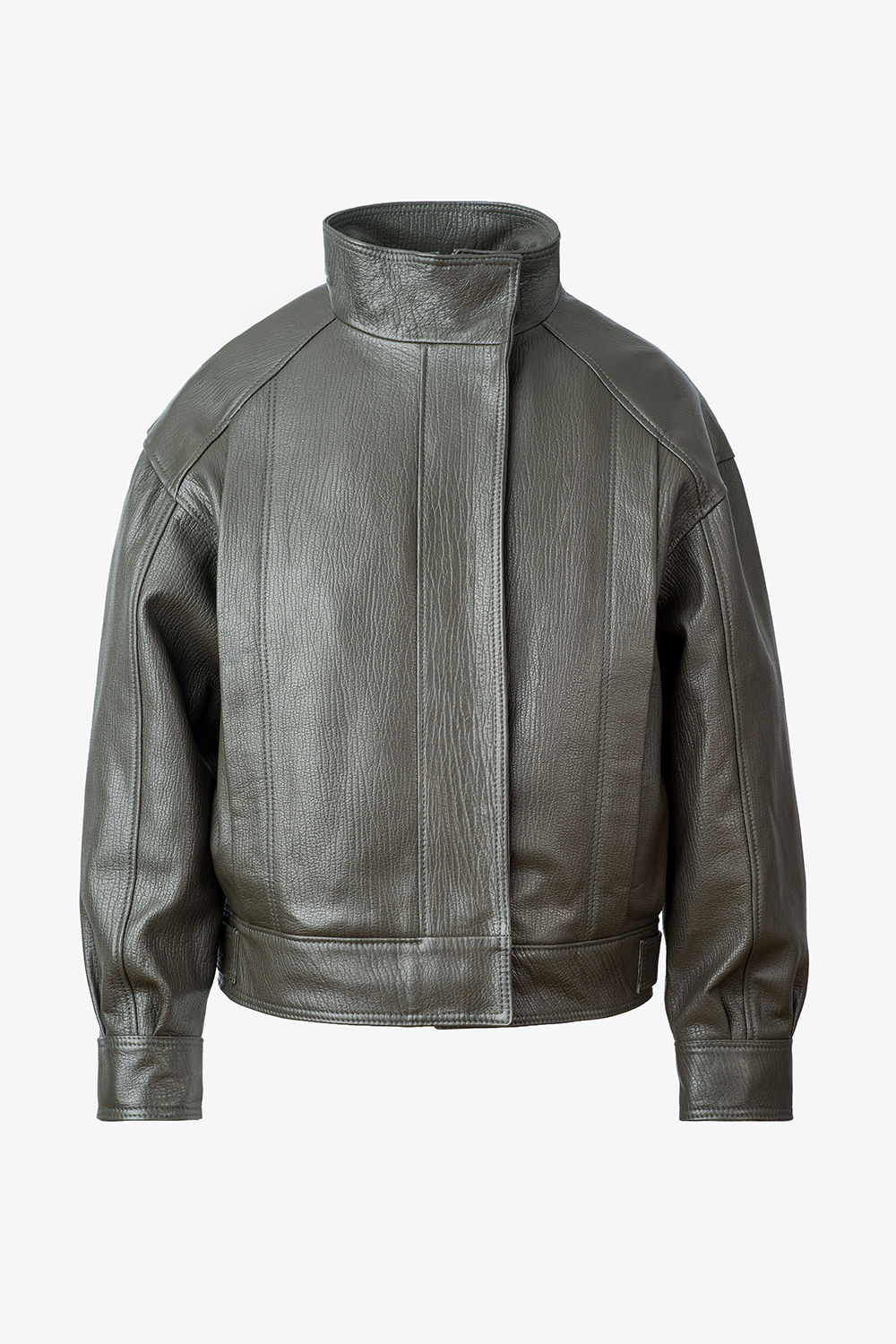 Ez a gyémántmintás bőrdzseki egyedi és modern darab, ideális az őszi-tavaszi szezonra. Különleges kialakításával és magas gallérjával a dzseki extra stílust kölcsönöz minden öltözéknek. Az alján és a mandzsettáknál található bőrgumi tökéletes illeszkedést és fokozott kényelmet biztosít. Két praktikus zsebbel rendelkezik, a záródás pedig rejtett patentokkal történik, fenntartva az elegáns és kifinomult megjelenést. A barna és fekete színben kapható kabát ideális választás a feltűnő megjelenéshez és a modern megjelenéshez. Modellünk 174 cm magas, 36-os méretet visel, a termék hossza 51 cm.