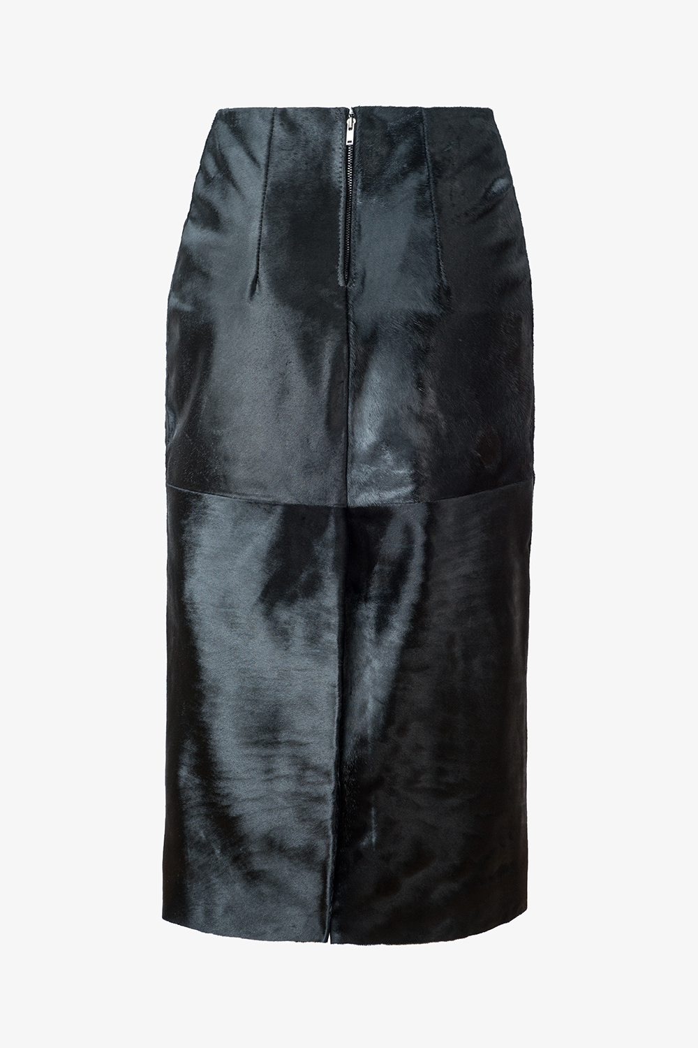 Nagyon jól párosítható gyapjúpulóverekkel, ingekkel, blézerekkel vagy bőrdzsekikkel, valamint magas csizmákkal vagy elegáns bokacsizmákkal. Fekete színben ez a természetes borjúszőrből készült szoknya sokoldalú, könnyen kombinálható darab, amely smart-casual vagy esti öltözékhez egyaránt illik.