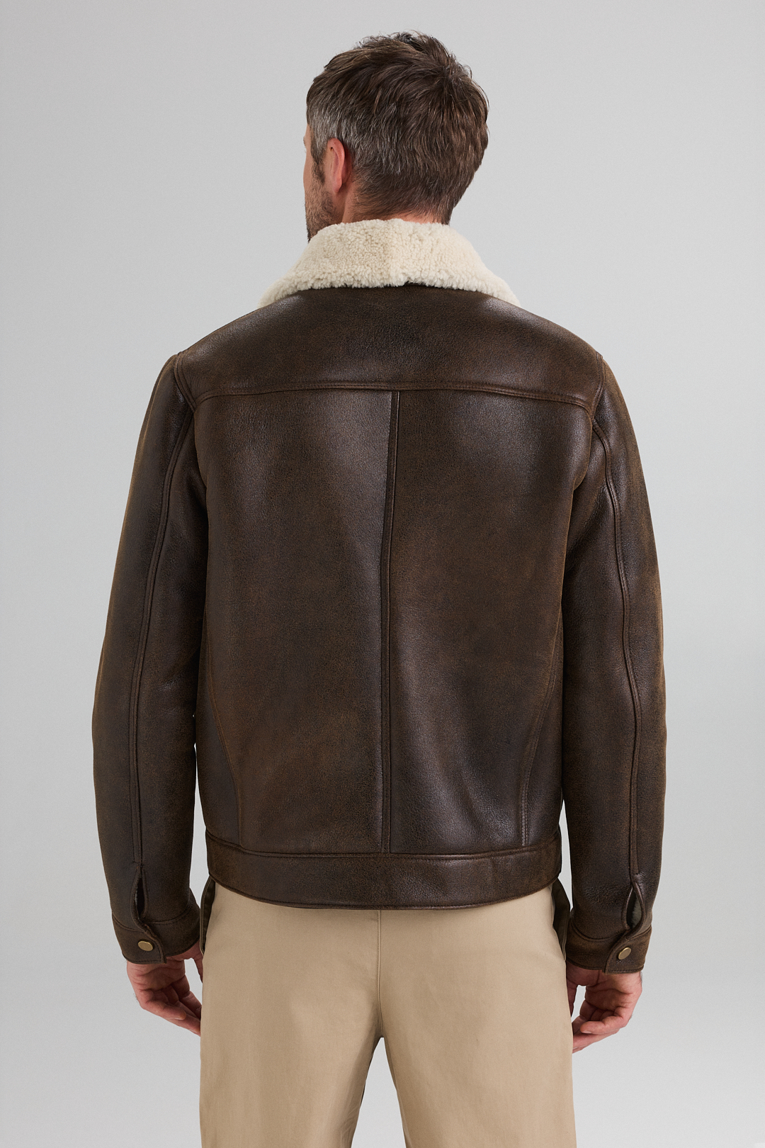 This natural leather bomber jacket stands out with its unique vintage shade and modern cut, blending urban style with premium refinement. The leather has a slightly distressed finish that adds character and authenticity, making it perfect for a bold yet sophisticated look.